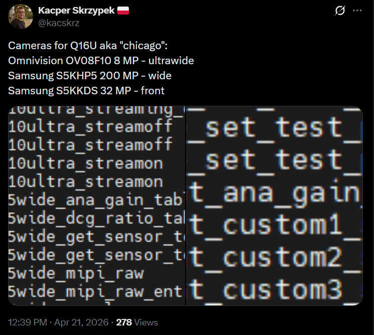 Na druhú stranu, nie všetko bude úplne nové. Podľa únikov by si mal Redmi Note 17 Pro Max zachovať podobnú fotografickú výbavu ako jeho predchodca. To znamená hlavný 200 MPx (Samsung ISOCELL S5KHP5) snímač doplnený o 8 MPx ultra-širokouhlý objektív (Omnivision OV08F10) a prednú “selfie” kameru s 32 MPx rozlíšením (ISOCELL S5KKDS).