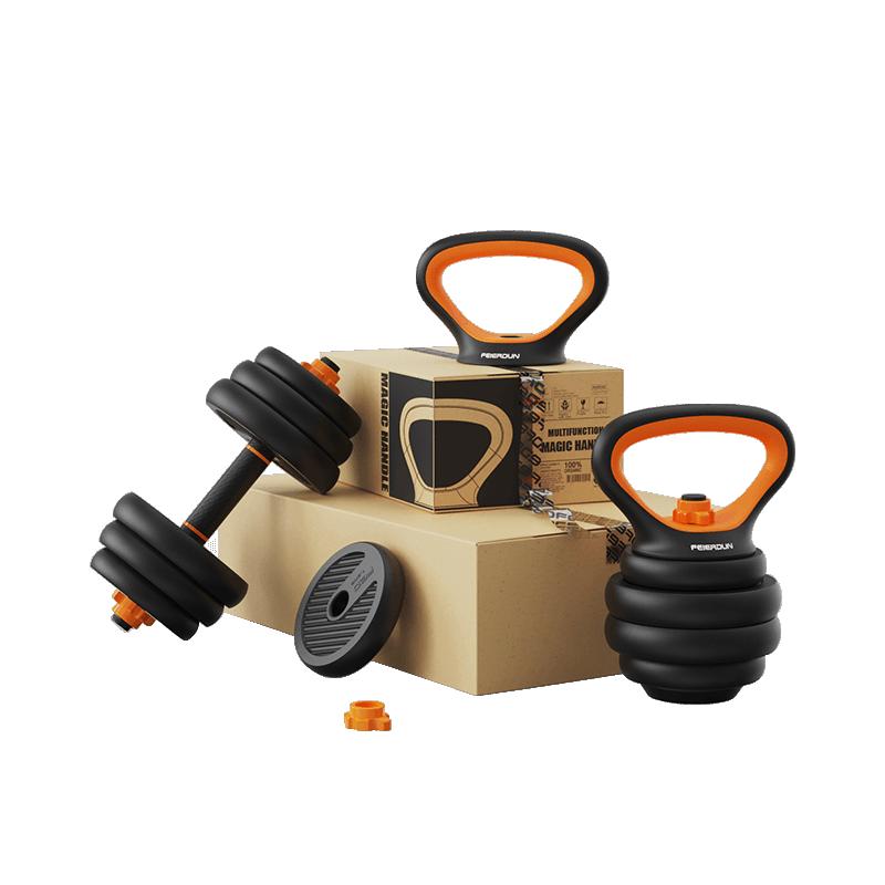 Okrem toho sú v balení dve rukoväte, ktoré umožňujú ukotviť viacero závaží pod seba a vytvoria tzv. kettlebell.